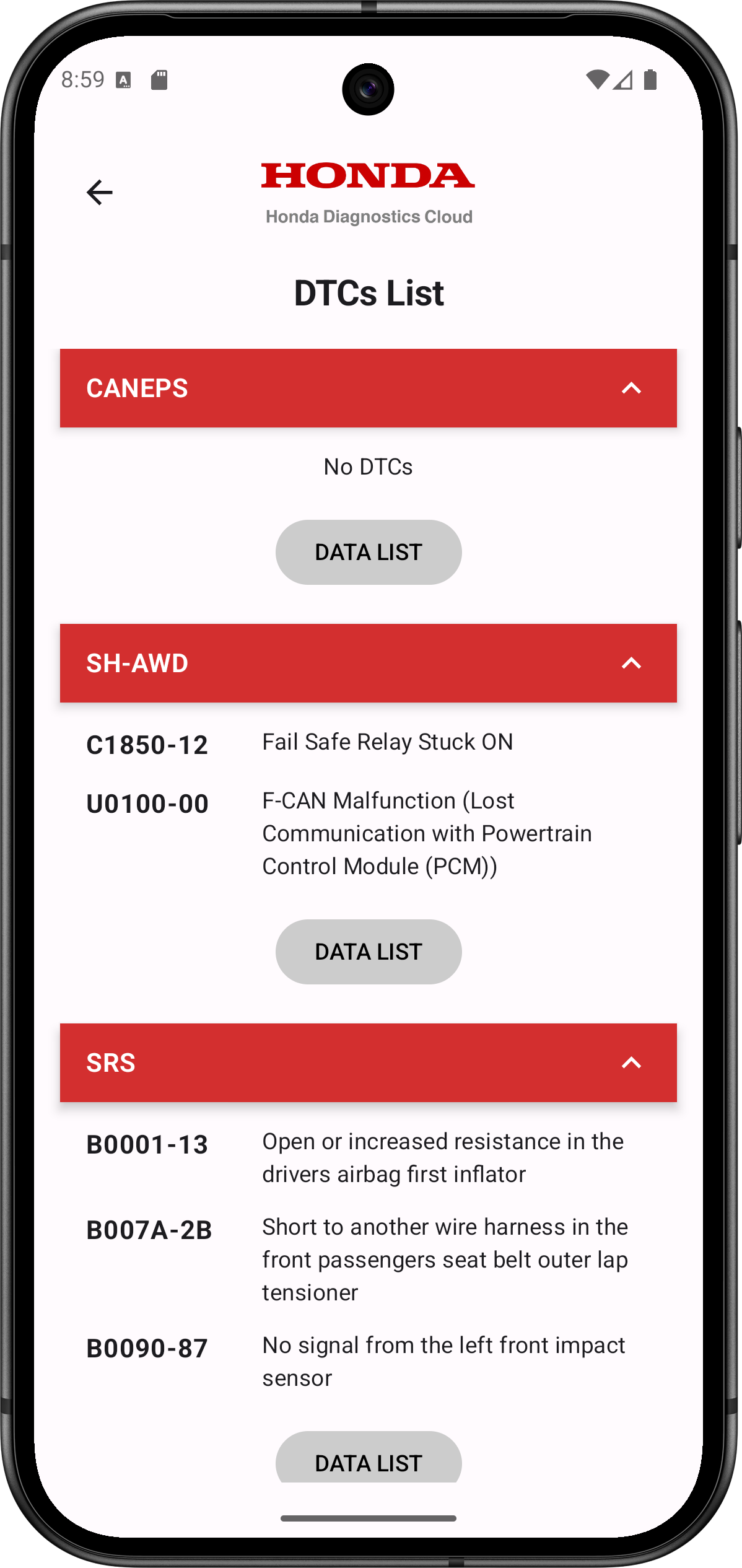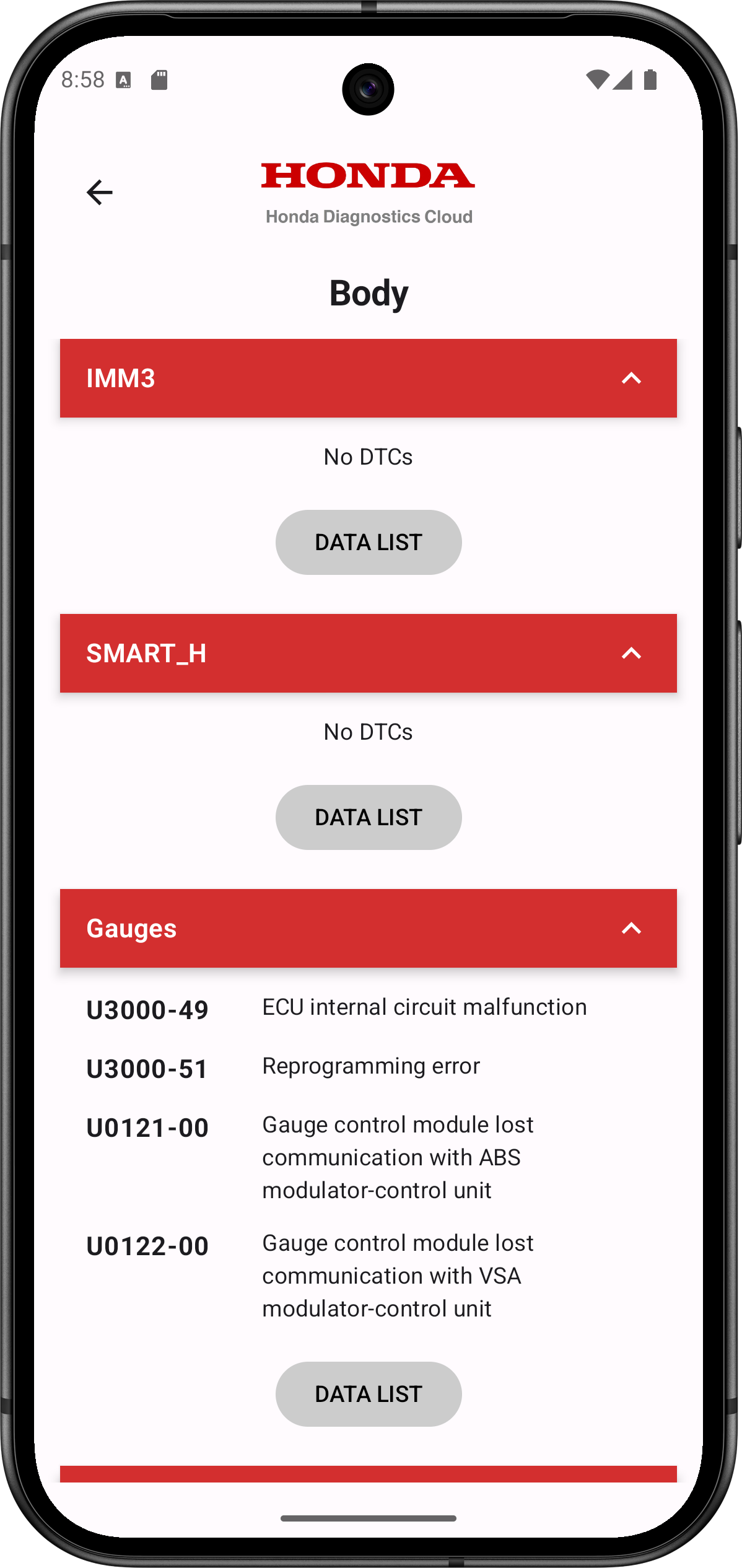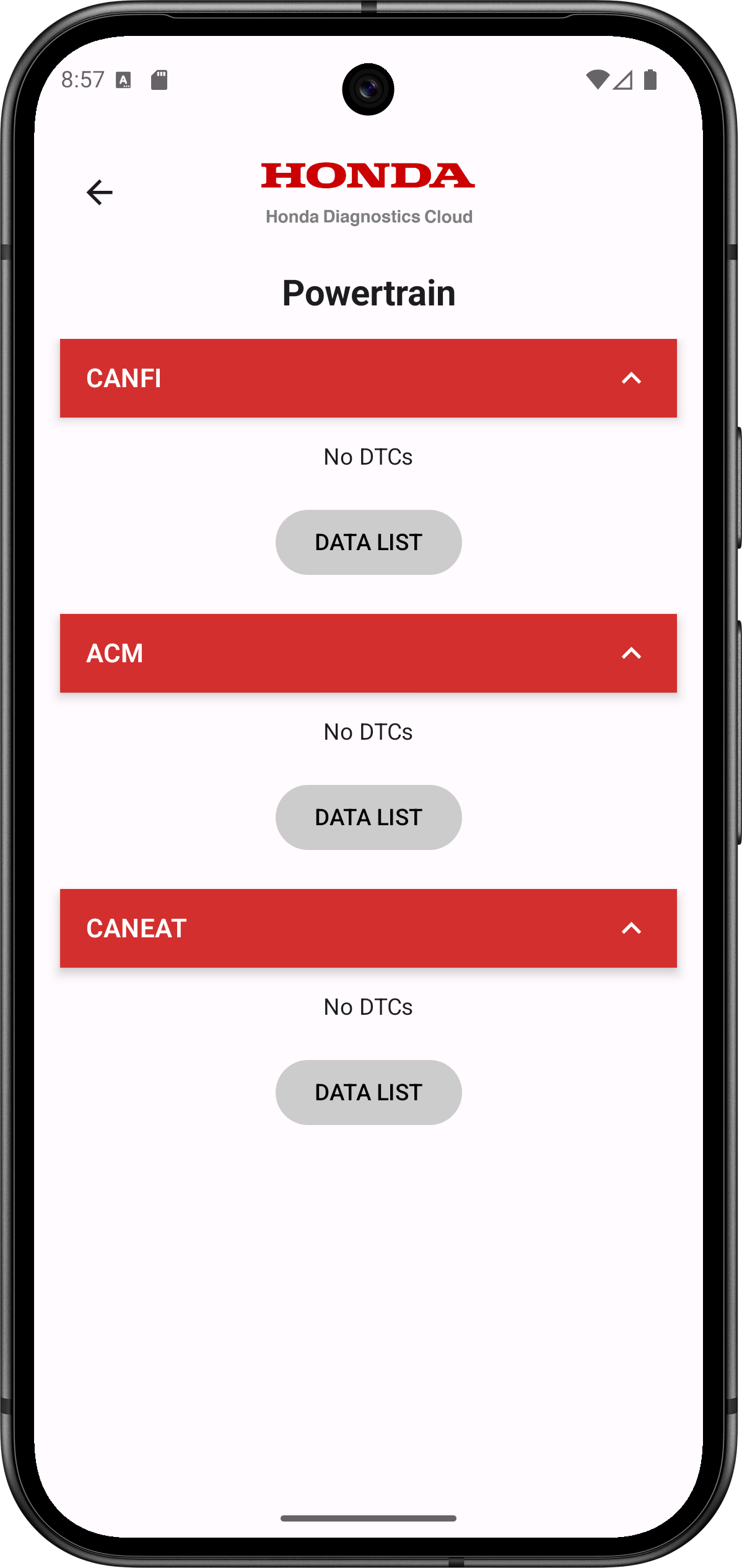- Then, tap on the ‘DATA LIST’ button in the system for which you want to view the Data List.