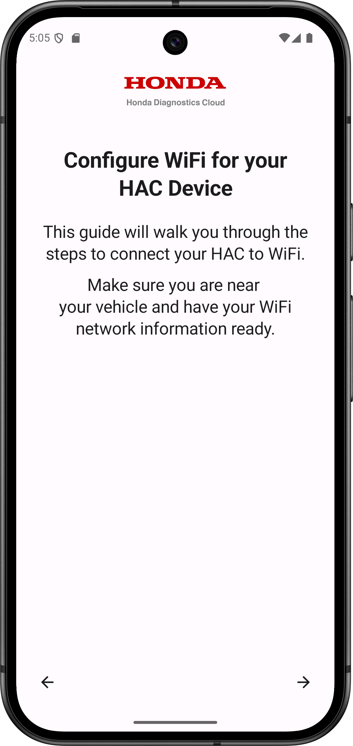 Overview: Follow the guided steps to connect a HAC to your Wi‑Fi network. Ensure you are near the vehicle and have Wi‑Fi information ready.Follow these steps to configure the capsule: