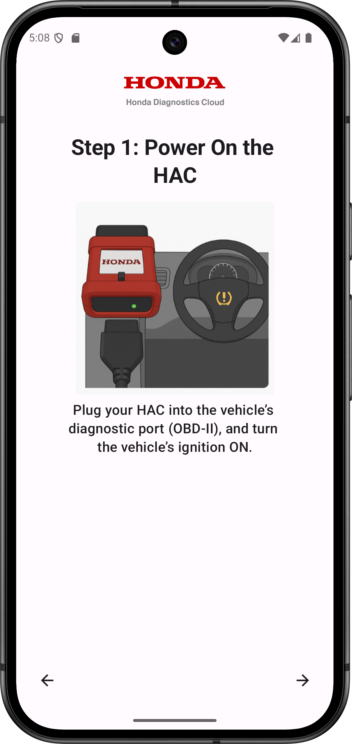 Step 1: Power on the HAC — plug it into the vehicle OBD-II port and turn the ignition ON.