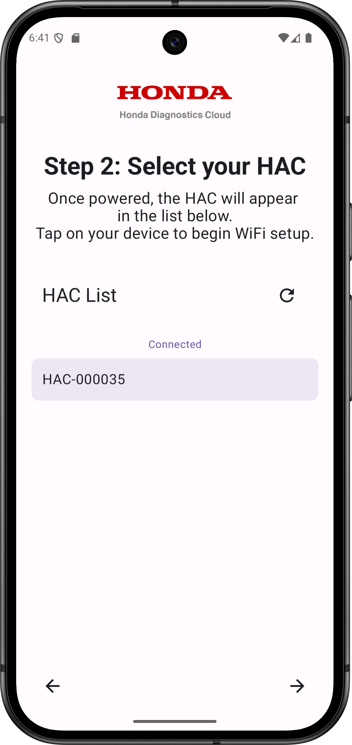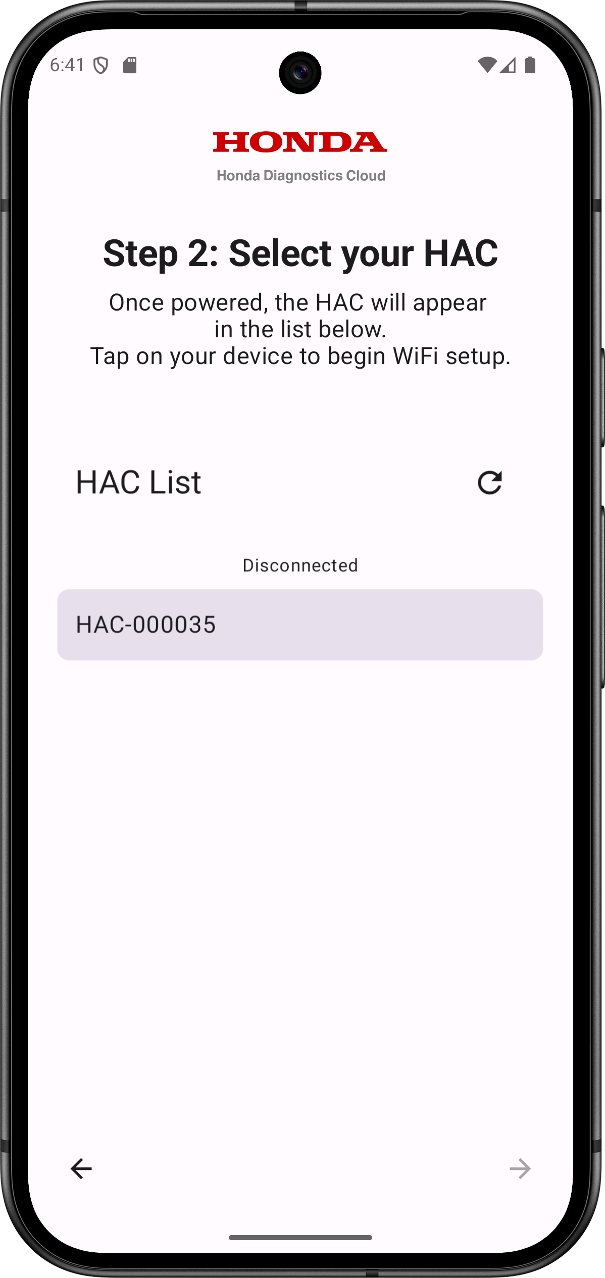 - Ensure HAC is connected to Wi‑Fi and HAC serial number is visible in the app. (If not, perform the Wi-Fi configuration steps.)