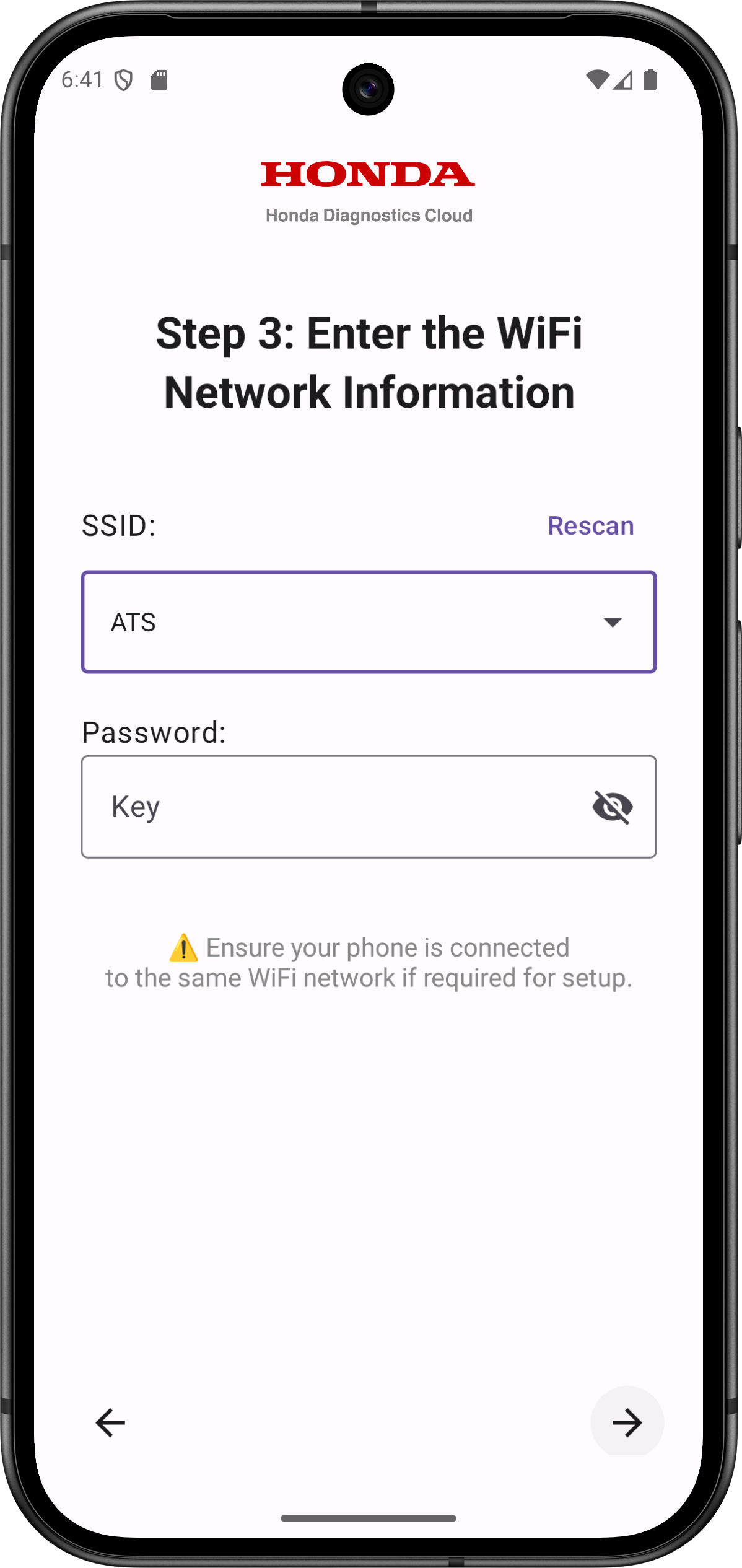 Step 3: Select the Wi-Fi SSID and enter the correct password to configure HAC then select right arrow to apply settings.