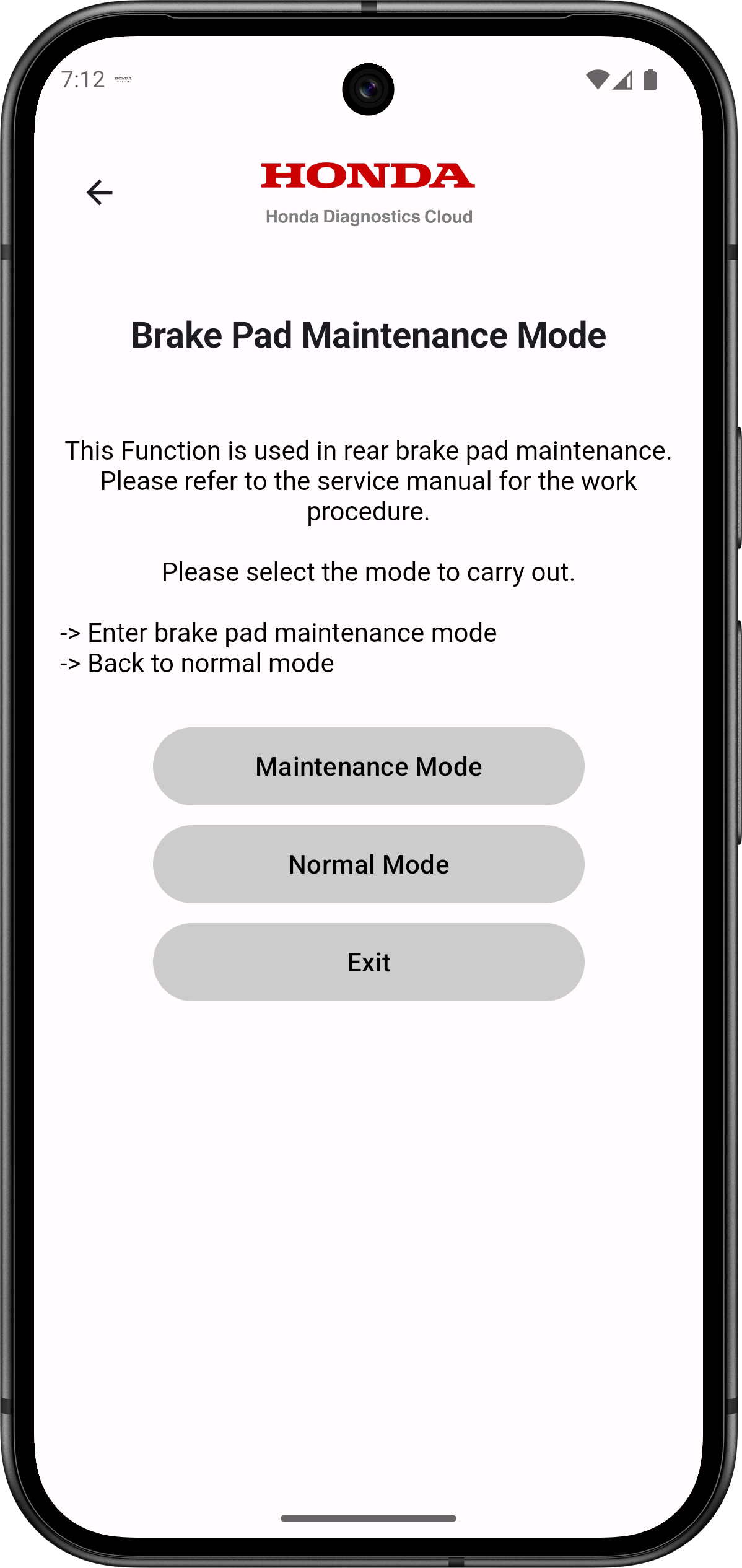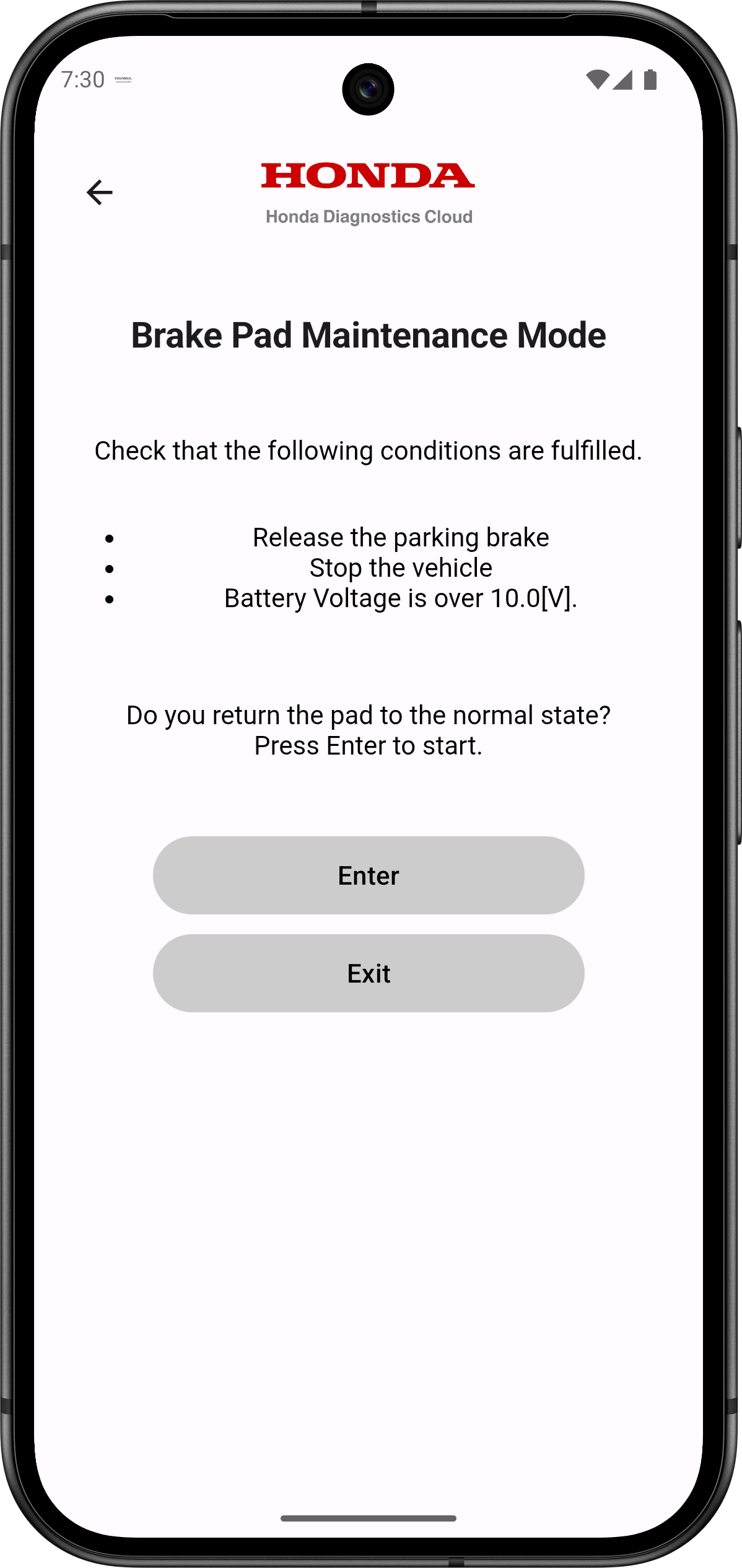 Note: The “BRAKE PAD” button will only be visible if the vehicle’s ECU supports the Brake PadMaintenance feature.