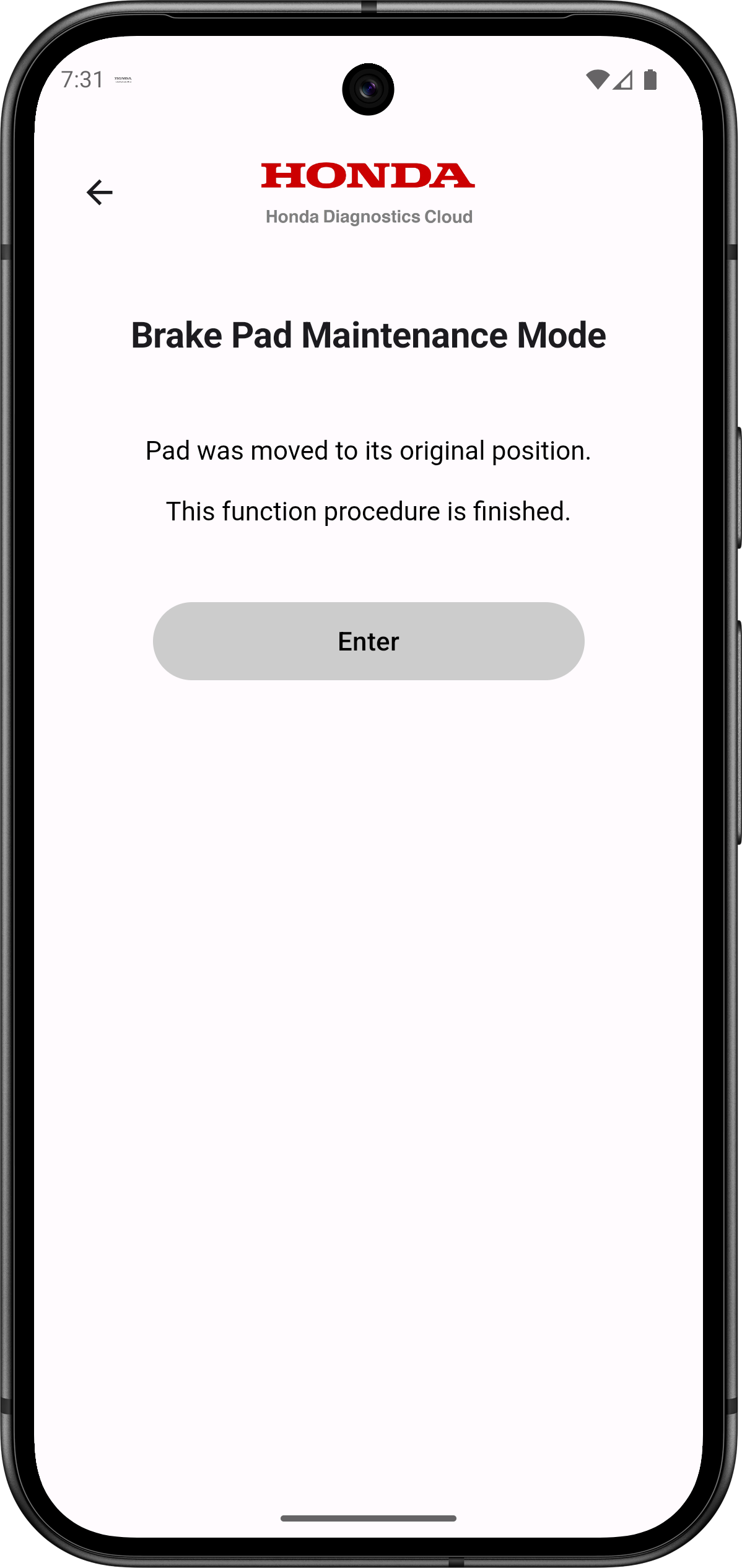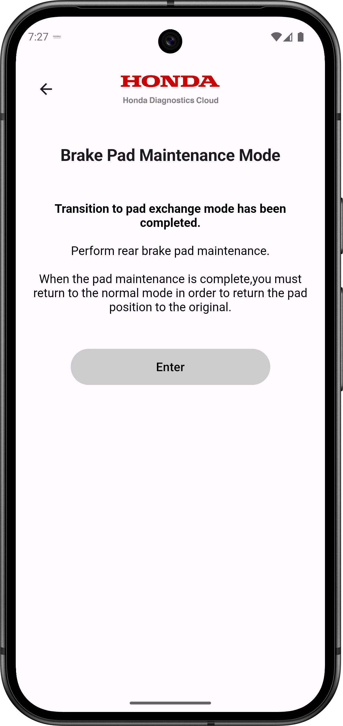 - The Brake Pad Maintenance Mode procedure is now complete.