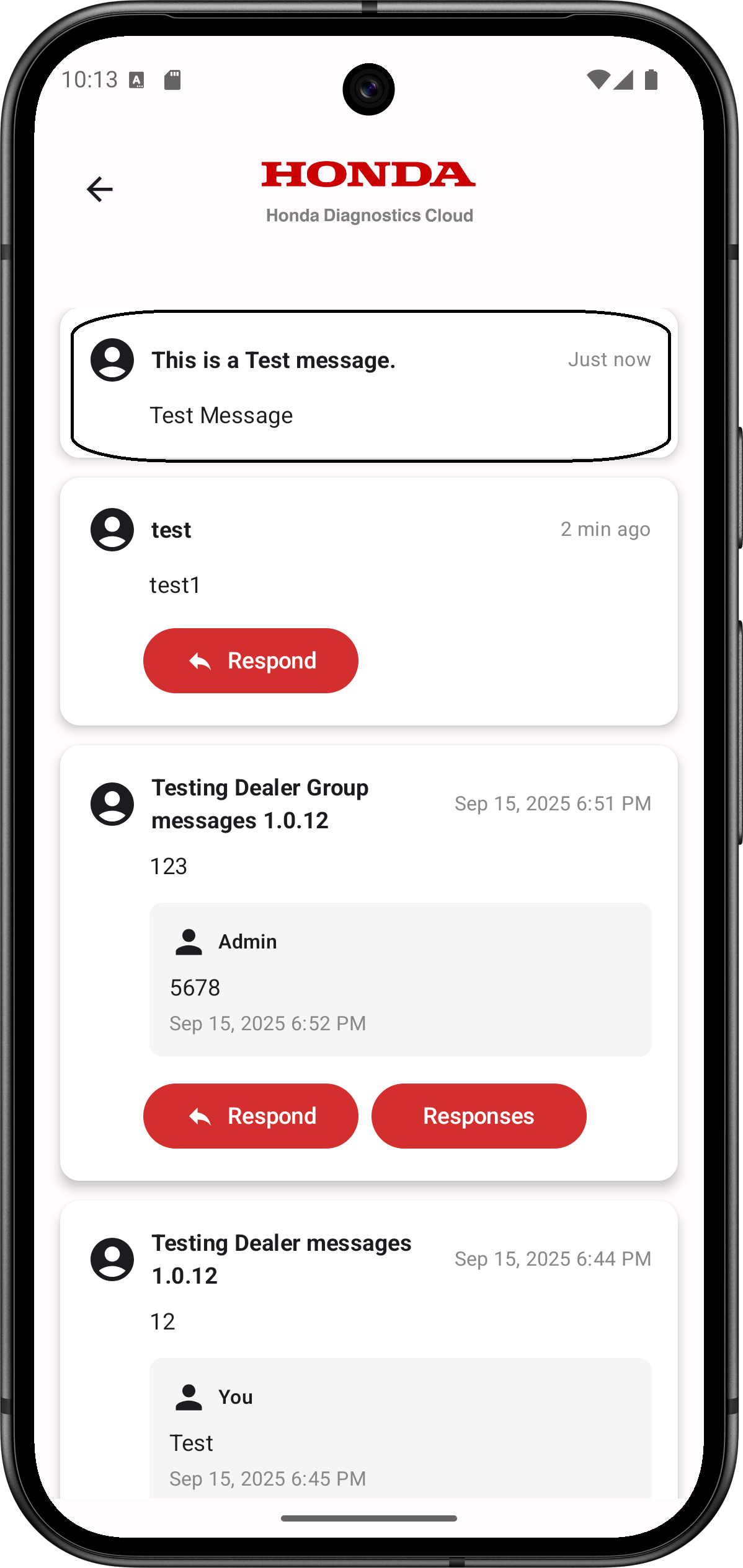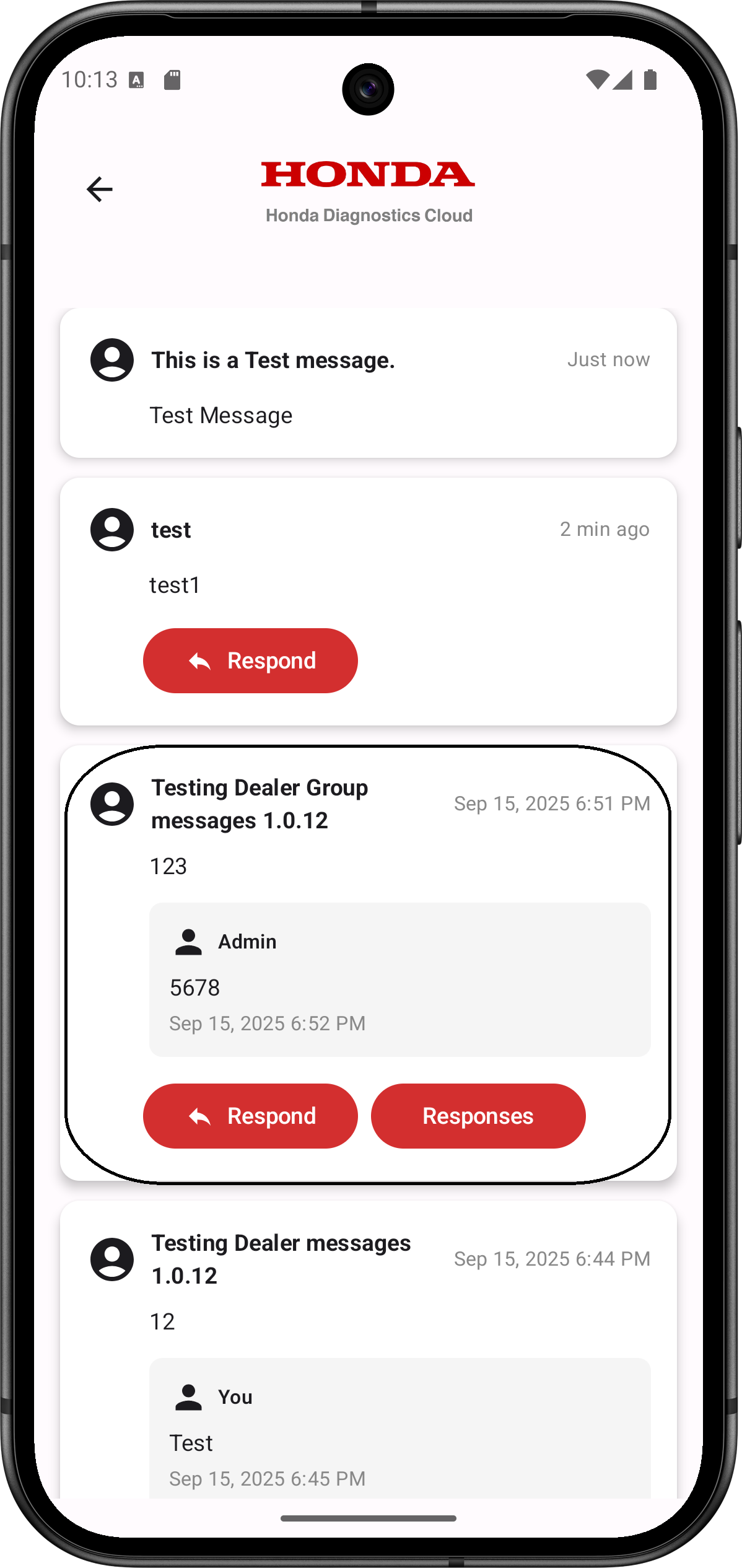 Note: Dealer Group messages are announcements and cannot be replied to.